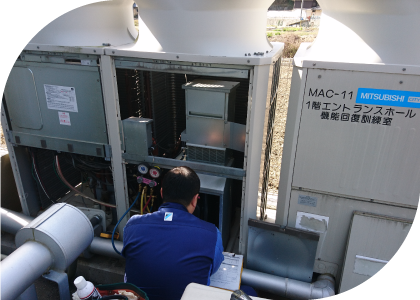 空調機器の性能維持、電気使用量のメンテナンスが欠かせません。また、空調機器の不具合や故障への対応も不可欠です。 当社では、自社サービスマンが修理や洗浄等のメンテナンスに迅速に対応いたします。
